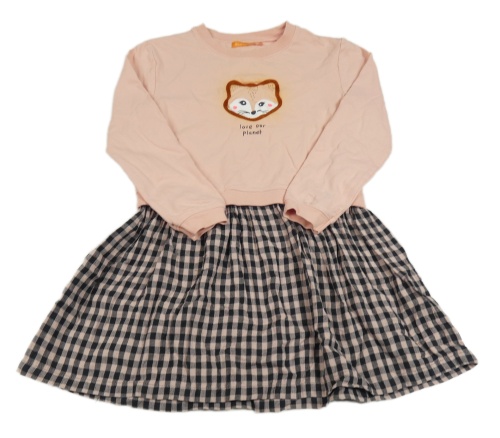 Broskvovo-kockované teplákovo/plátěné šaty s jezevcem Staccato