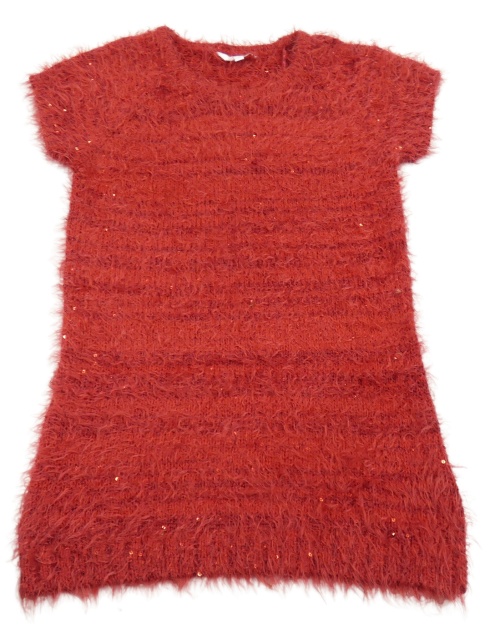 Červené pletené chlpaté šaty s flitrami Miss E-vie