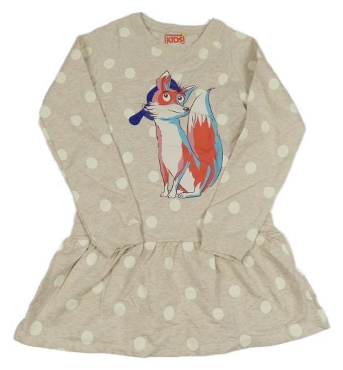 Svetlobéžové melírované bodkovaná é teplákové šaty s líškou Kids