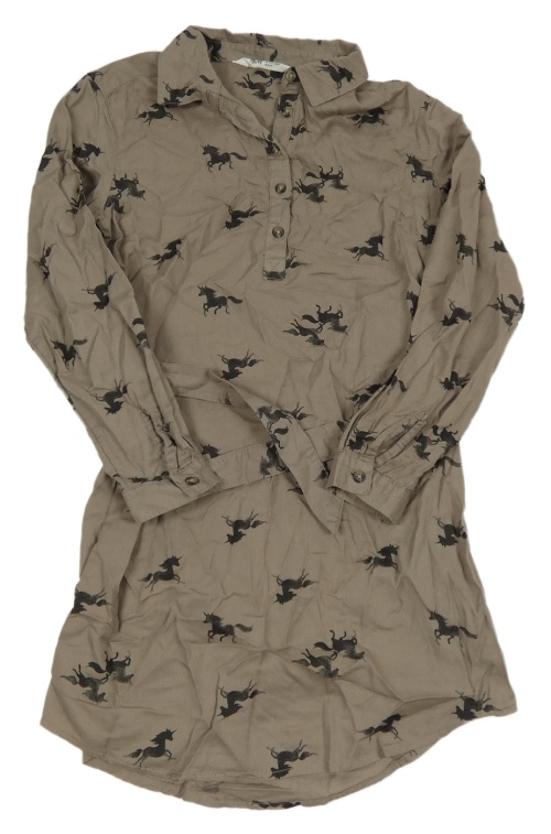 Šedohnědé košeľové šaty s jednorožcami a opaskom H&M