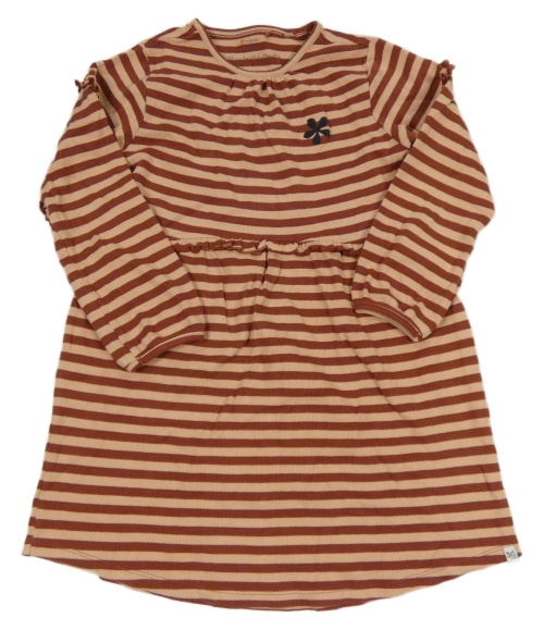 Mahagónovo-pudrové pruhované šaty s květem a volánikmi noppies