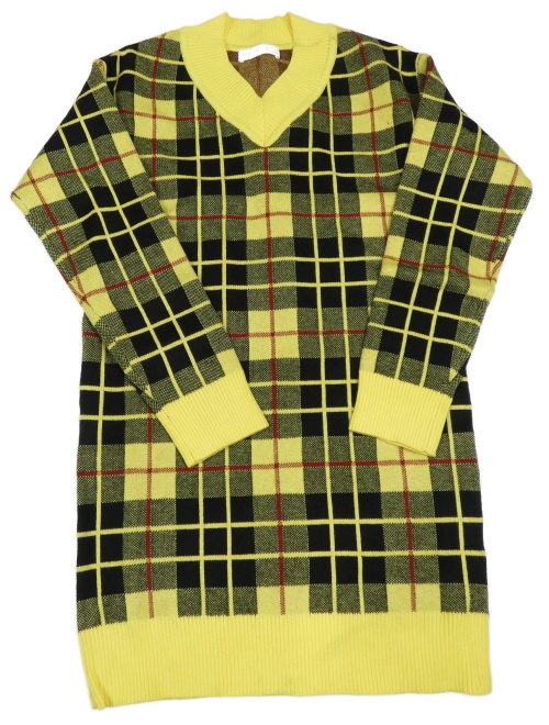 Žlto-čierno-červené kockované svetrové šaty Shein