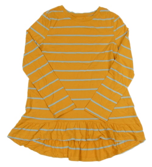 Okrovo-svetlomodrá pruhovaná bavlnená šatová tunika