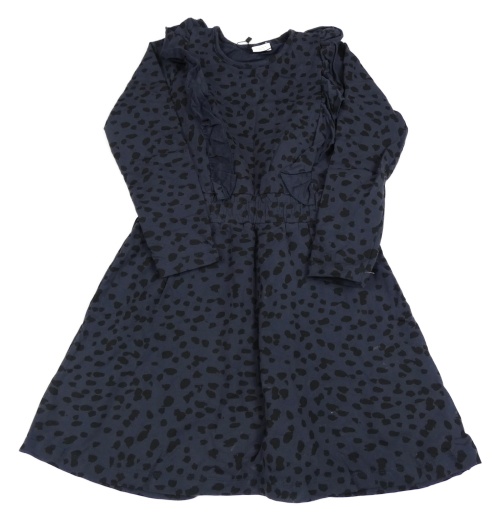 Tmavomodré vzorované teplákové šaty s volánikmi