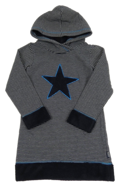 Tmavomodro-sivé pruhované teplákové šaty s hviezdou a kapucňou JAKO-O