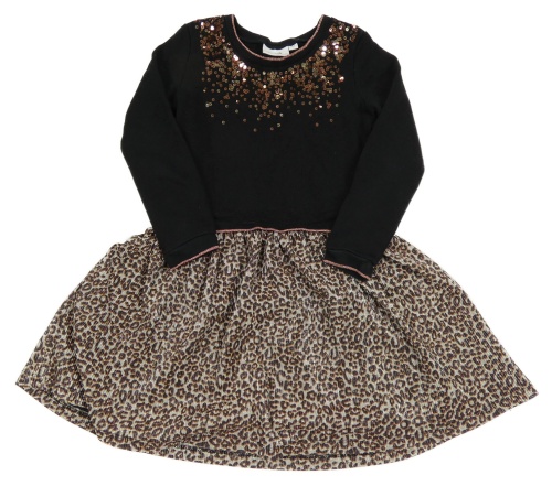 Čierno-stříbrno-béžové teplákové šaty s flitre a sukní s leopardím vzorom