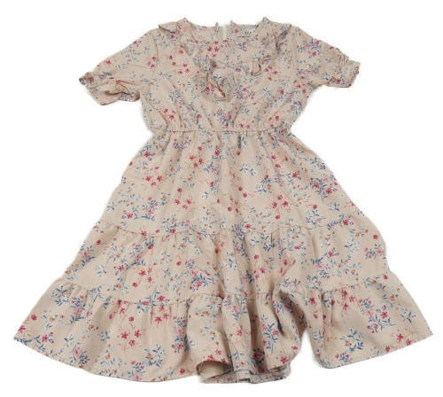 Svetloružové kvetinové šaty s volánikom
