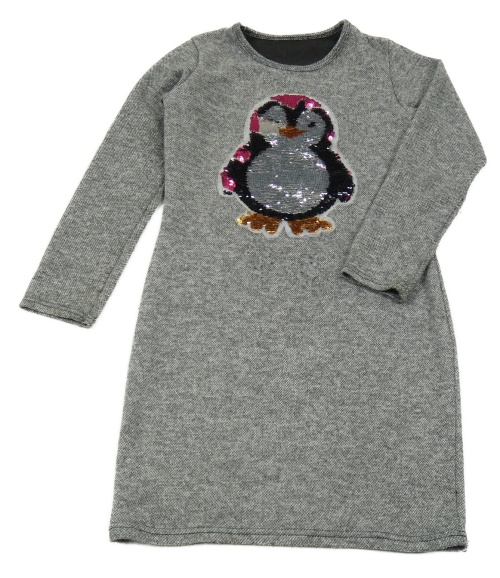 Sivé pletené šaty s tučňákem z flitrů