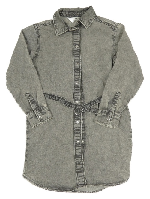 Sivé rifľové prepínaci šaty s opaskom a golierikom H&M