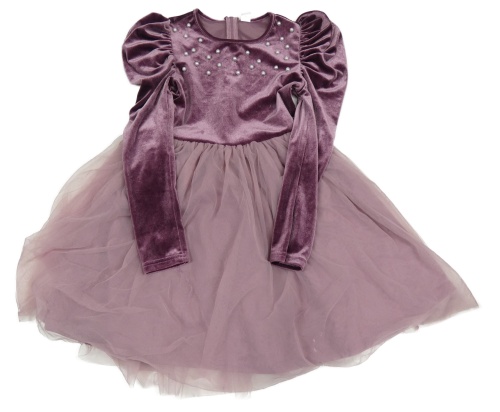 Vínovo-fialové sametovo/tylové šaty s perličkami Shein