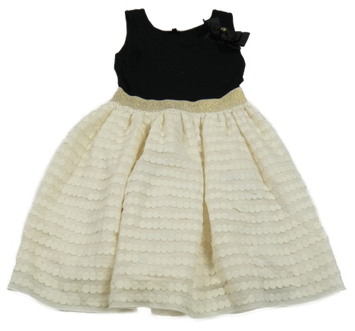 Čierno-biele šaty so vzorovanou sukní a zlatým pasom