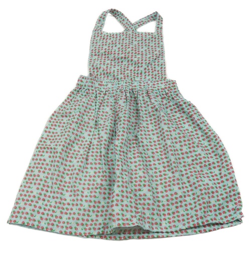 Svetlomodrá plátenné na traké sukňa s jahůdkami