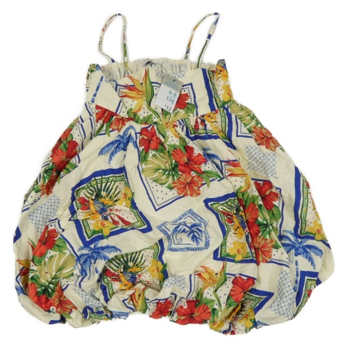 Nové - smotanové plátenné podšité balonové letné šaty s papoušky a kvietkami a palmami PRIMARK