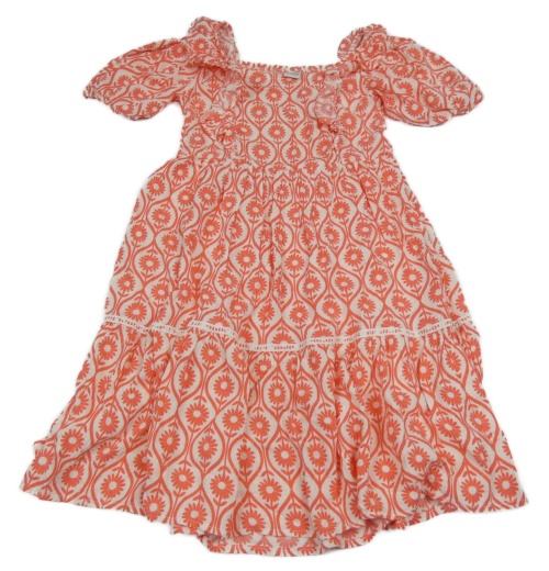 Bielo-korálové kvetované trblietavé ľahké šaty s volánikmi LC Waikiki