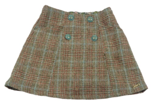 Kaki-ružovo-modrá vzorovaná sukňa s gombíky