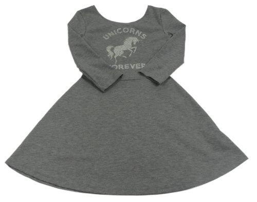 Sivé melírované teplákové šaty s jednorožcom a nápisom H&M