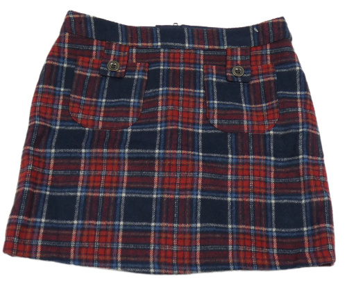 Tmavomodro-bielo-červená vlnená kockovaná sukňa Next