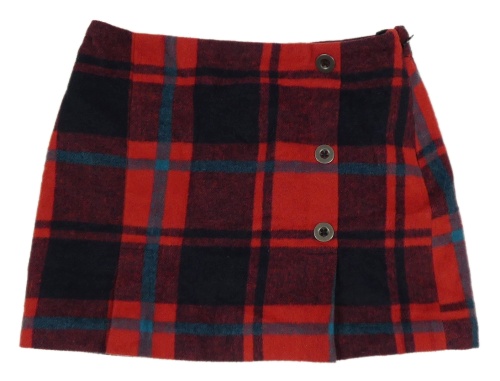 Tmavomodro-červená kockovaná vlnená sukňa Next