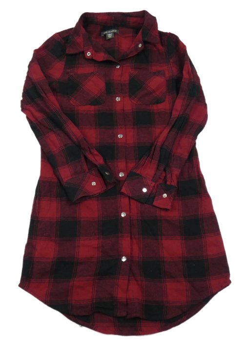 Vínovo-čierne kockované prepínaci košeľové šaty Primark