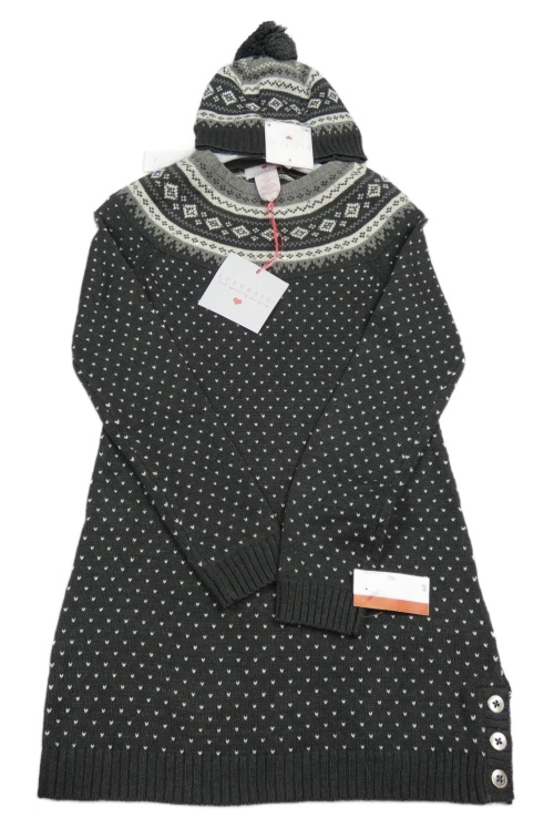 Nové - 2set - Sivé svetrové šaty so vzorem + čapica Lulurain