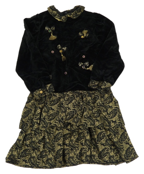 Čierno-zlaté šaty s mašľami a vzorom a volánikom