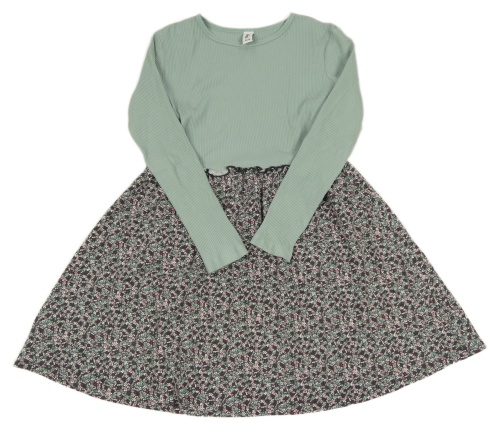 Zelené rebrované šaty s tmavošedou květovanou sukní Yigga