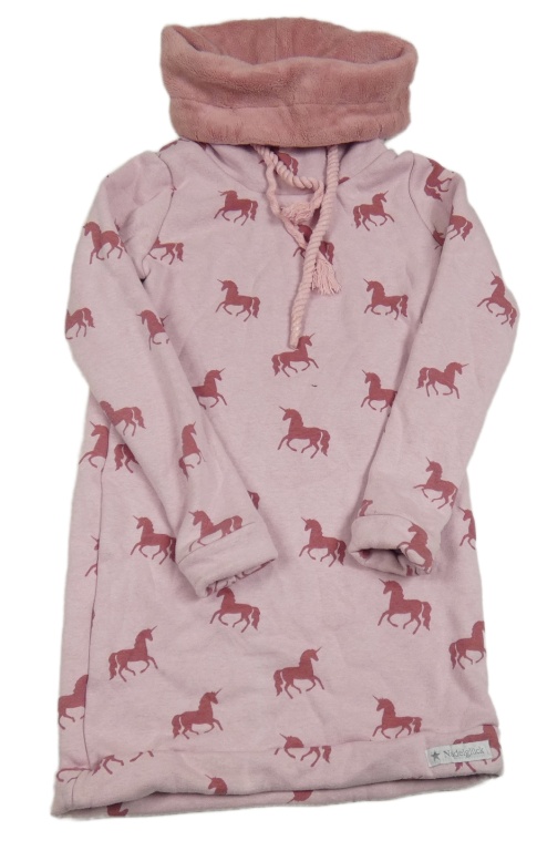 Ružové teplákové zateplené šaty s jednorožcami a rolákom