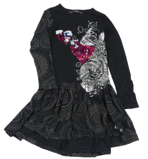 Čierne šaty so srdíčky z flitrů a mandalou Desigual