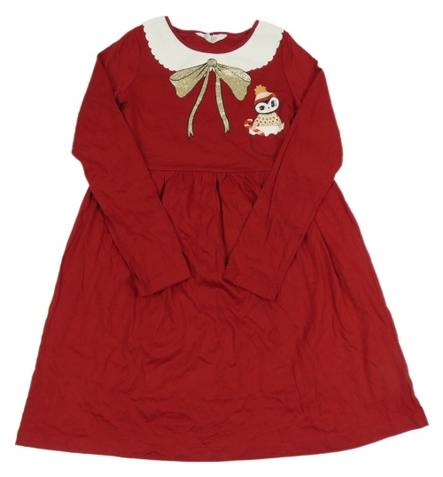 Červené bavlnené šaty s golierikom a tučňákem H&M