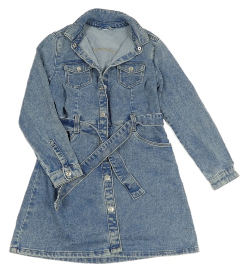 Modré melírované rifľové prepínaci šaty s opaskom a golierikom C&A