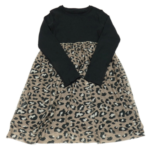 Čierne rebrované šaty s leopardí tylovou sukní Nutmeg
