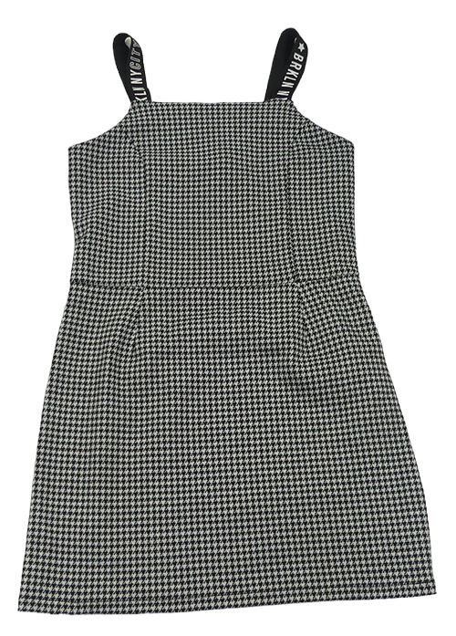 Čierno-svetlosivé vzorované úpletové šaty s nápismi C&A
