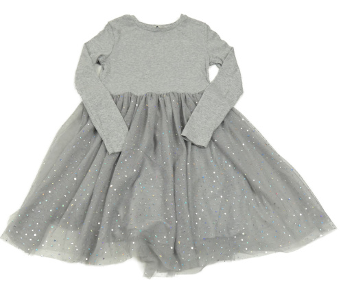 Sivé melírované rebrované šaty s tylem s flitrovými bodky George
