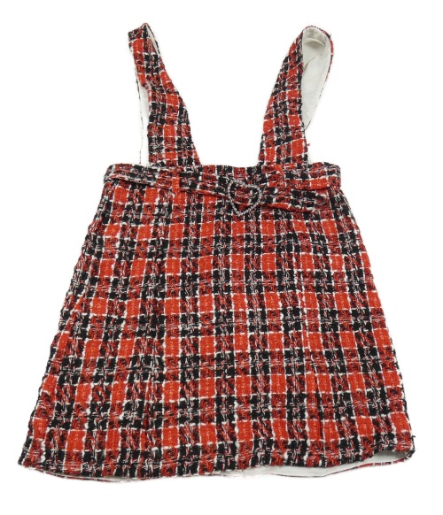 Červeno-čierno-biela kockovaná na traká sukňa s opaskom s přezkou River Island