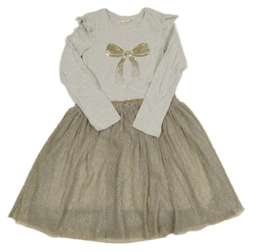 Bielo-sivo-strieborné bavlněno/plisované šaty s mašlí z flitrů Kids