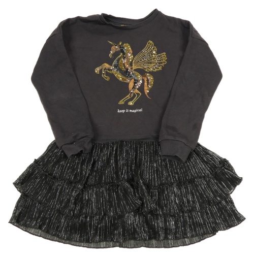 Tmavosivé teplákové šaty s jednorožcom a třpytivou sukní F&F