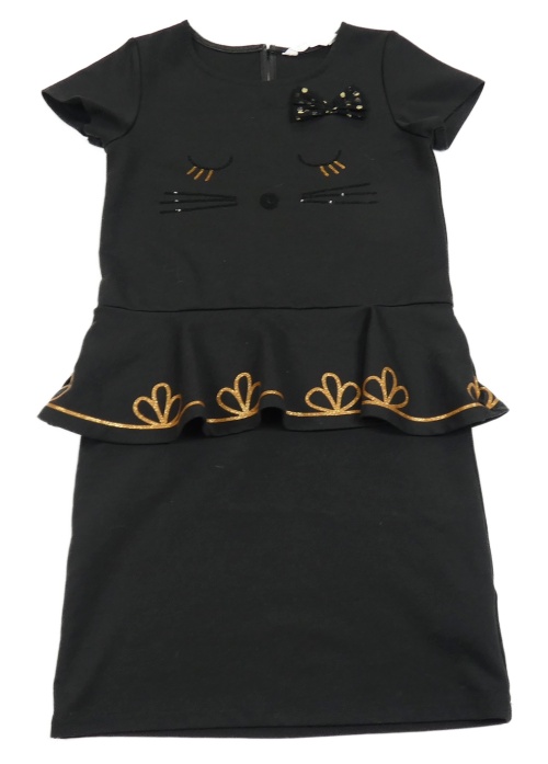 Čierne šaty s kočičím čumáčkem z flitrů a volánikom H&M