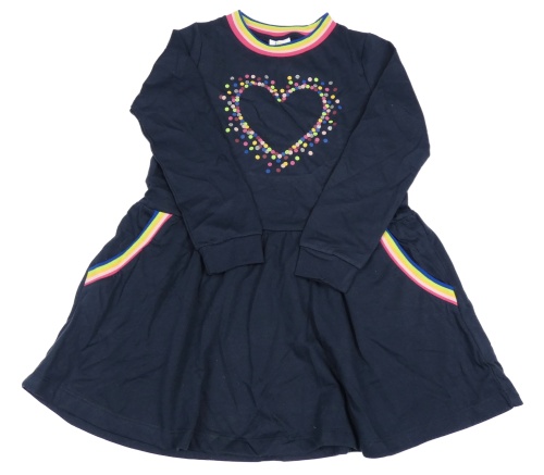 Tmavomodré teplákové šaty s barevným lemem a srdcem