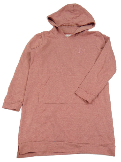 Staroružové melírované teplákové šaty s hviezdičkou a srdiečkom a vreckom a kapucňou POCOPIANO