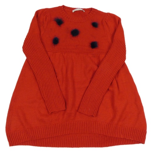 Červené pletené šaty s bambulkami