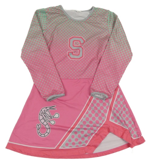 Ružovo-zelené vzorované elastické šaty s číslom