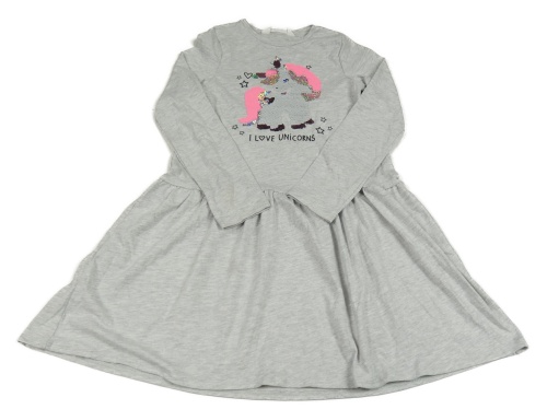 Sivé melírované šaty s jednorožcem z flitrů H&M