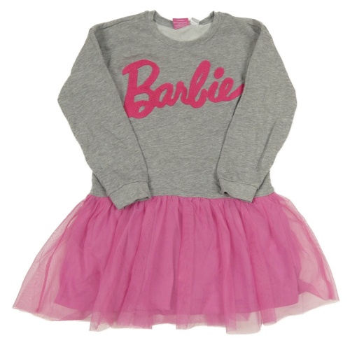 Sivo-ružové teplákovo/tylové šaty s logom Barbie