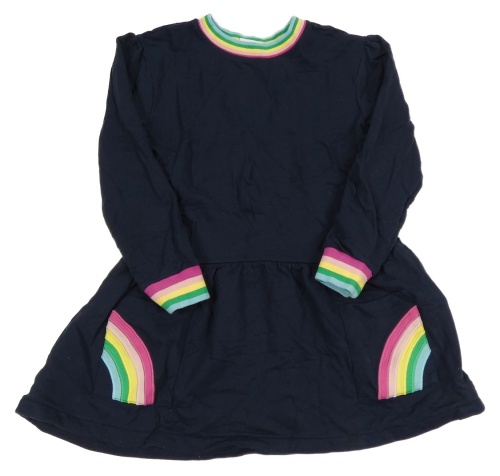 Tmavomodré teplákové šaty s duhami a pruhmi famy