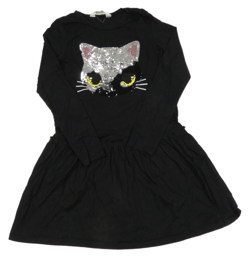 Čierne bavlnené šaty s kočkou z flitrů H&M