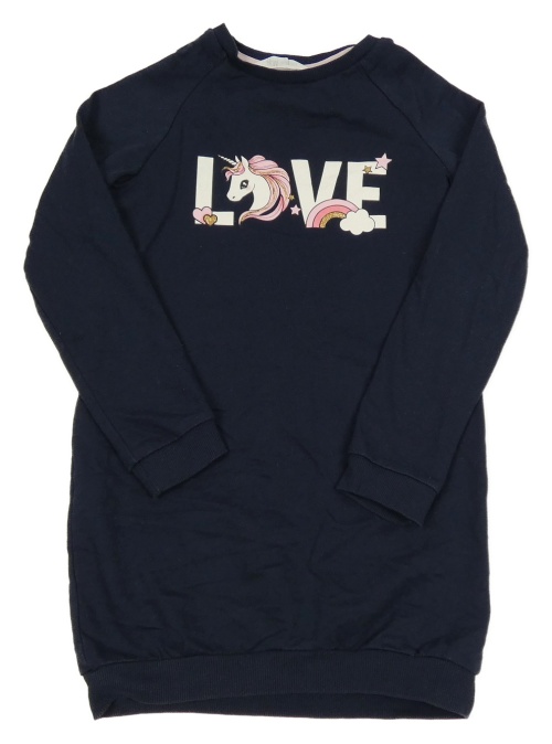 Tmavomodrá šatová mikina s nápisom a jednorožcom H&M