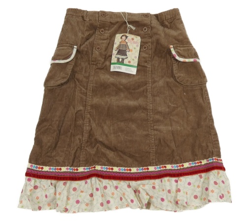 Nové - Hnědo-barevná manšestrová sukně květovaným prvkem