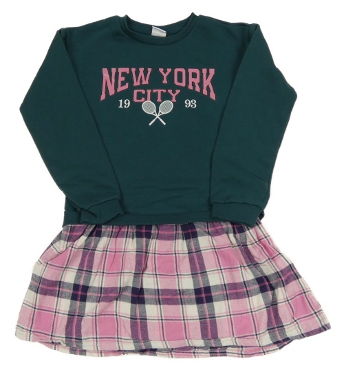 Tmavozeleno-kockované teplákovo/plátěné šaty s nápisom Y.F.K.