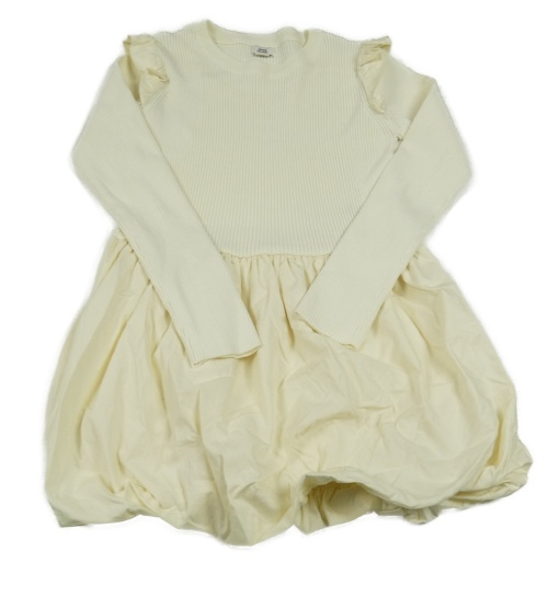 Smetanovo-vanilkové rebrované úpletovo/plátěné balonové šaty s volánikmi RIVER ISLAND