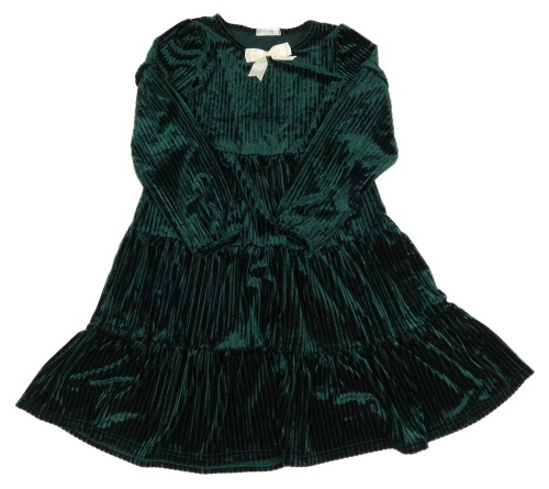 Tmavozelené rebrované zamatové šaty s mašlou